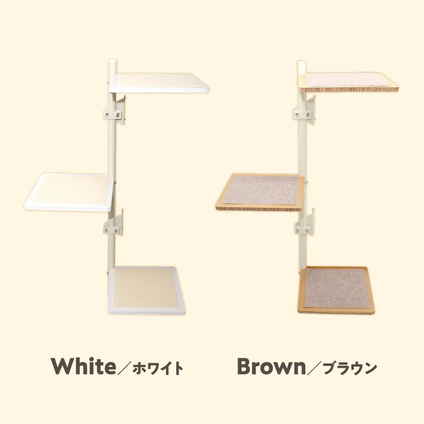 (3) 棚の設置枚数、高さや角度調整も自由自在。愛猫の成長や気分に合わせてカスタマイズ可能。