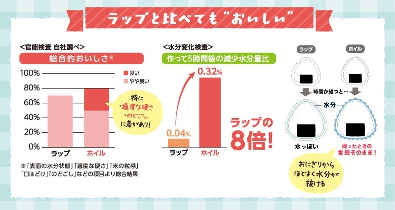 コラムでは、おにぎり包みの歴史と、ラップとホイルの違い・メリット比較を詳しくご紹介しております。