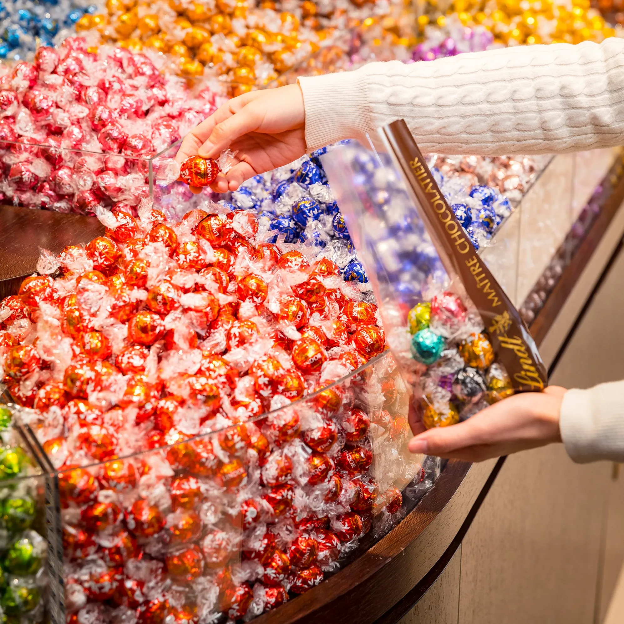 「リンツ ショコラ ブティック」は、1845年創業、世界120カ国以上で愛されているスイスの歴史あるプレミアムチョコレートブランド「リンツ」のチョコレート専門店です。人気のリンドールが種類豊富に並ぶピック&ミックスでチョコレートの量り売りをお楽しみいただけます。