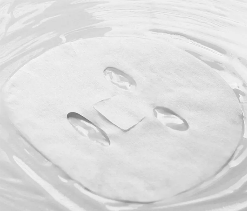 繊細なお肌に優しい、国産コットン100%生地を採用。吸収性が高く、美容液をたっぷり含んだ厚生地シートなのに、顔の凸凹にしっかりフィットするように計算されたスリットが入っているので目元も際までしっかりケアします。