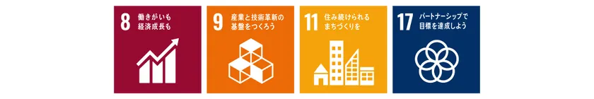 南海グループでは、SDGsへの取組みを強化しており、関連するニュースリリースに「SDGsの目標アイコン」を明示しています。今回ご案内の取組みは、8番、9番、11番、17番に繋がるものです。