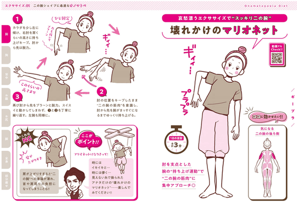 【2】イラストで分かりやすい!! また、各エクササイズには、お手本動画を見られるQRコード付き!