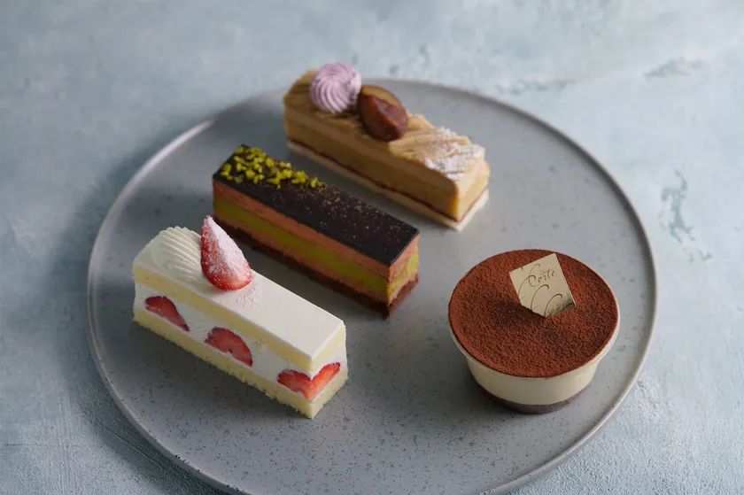 きらびやかなショーケースの中に所狭しと並ぶCorte自慢のケーキ。北海道産のマスカルポーネとマルサラ酒を使い、奥深い味わいに仕上げたコルテ自慢のティラミス「テルミス」や、イタリア産ピスタチオペーストと最高級フランス産ビターチョコを使用した滑らかな口溶けの「ピスタチオショコラ」など、常に新しい美味しさを追求する、想いが詰まったスイーツをお楽しみいただけます。
