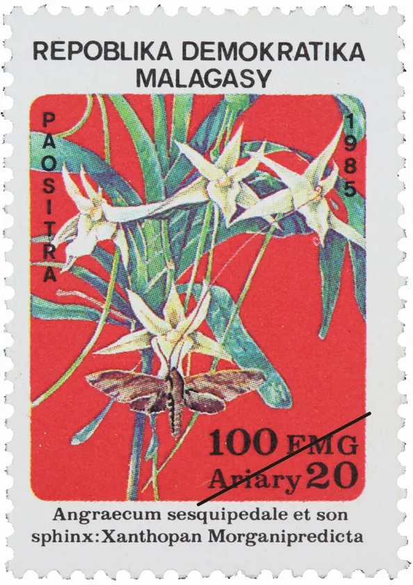 ランと送粉昆虫が描かれた切手(マダガスカル 1985年)