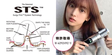 おしゃれを楽しみたい、髪を伸ばしている人たちの髪と心に向けて、アプローチ!ヘアスタイルを維持しながら「枝毛処理・髪のパサつき・ダメージ毛」を自宅で簡単ケアし艶のあるキレイな髪へ導いてくれる。枝毛や傷んだ髪の毛先を約6ミリだけカットする特許取得のシャギートリムシステム(特許番号:第6292492号)を採用したアイテム。カラーや巻き髪で傷んでしまった方に強力な助っ人に!