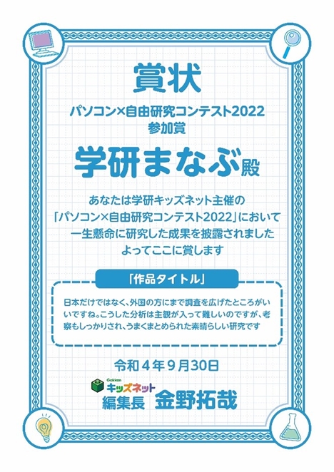 学研キッズネット編集部 「パソコン×自由研究コンテスト2022」事務局