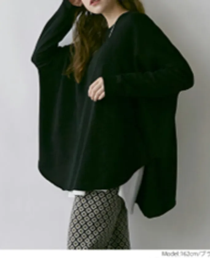 トレンドの程よいオーバーサイズとケープデザインが特徴的な裏起毛のスウェットトップス。立体的なボリューム感のあるポンチョ型シルエットと、柔らかな雰囲気を醸し出すラウンドカットの裾がこなれ感漂うお洒落なアイテムです。ゆったりとした身幅とヒップが隠れる長めの丈が気になる体のラインを拾わず、大人女性には有難いデザインです。4色展開のニュアンスカラーがカジュアルな印象の裏起毛スウェットを大人のリラクシースタイルにシフトチェンジ。