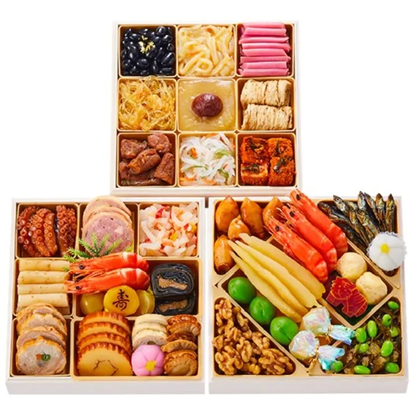 Shop/Item: [まるきん寿]和洋中三段重おせち吉祥 7寸 55品入 3~4人前