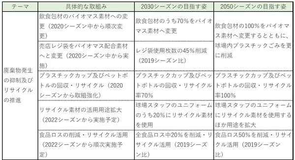 球場スタッフユニフォームへのリサイクル素材の活用 等