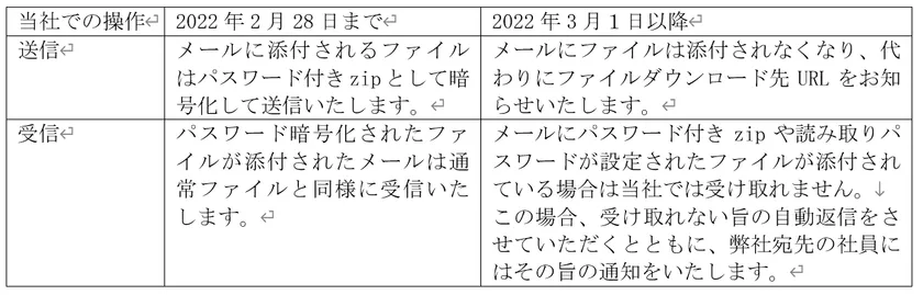 このため当社といたしましては、お預かりしている大切なお客様の情報を守るため、また、お客さまおよびお取引先さまへのコンピューターウィルスの2次感染を防止するために、このような対策を実施することといたしました。