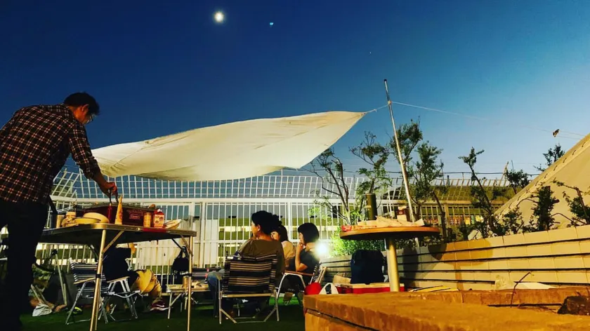 ■日本初(※当社調べ)の芝生張りのBBQ場&コタツでぬくぬくBBQ?!