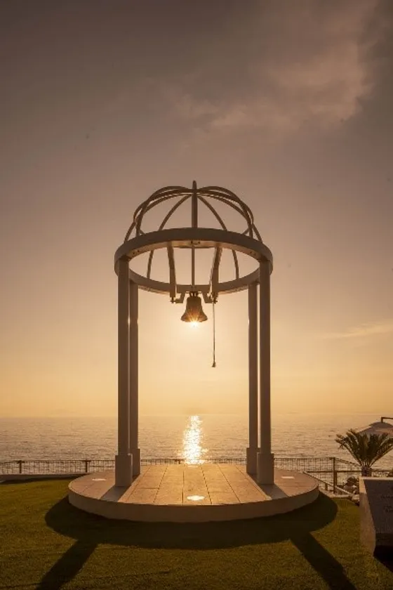 淡路島のマリンブルーに映える真っ白な『幸せの鐘』。