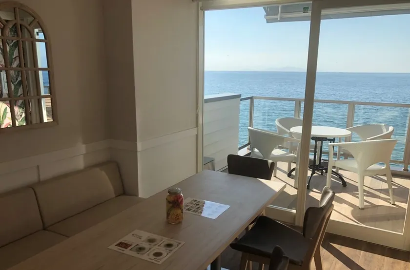 1階のはなれの個室には、食後にゆっくりくつろいでいただける海辺を眺望できるソファ席をご用意