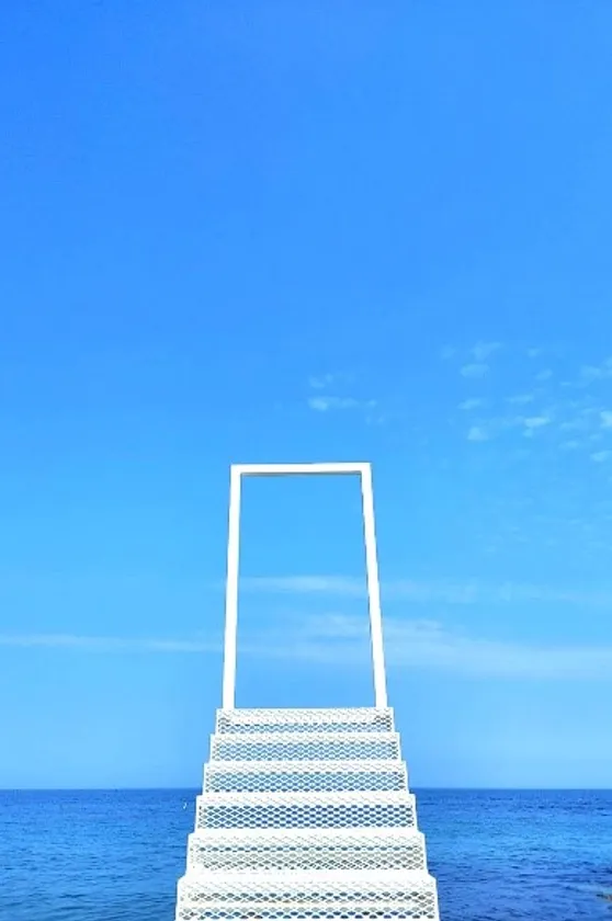 青い海と空の間へ続く「幸せの階段」