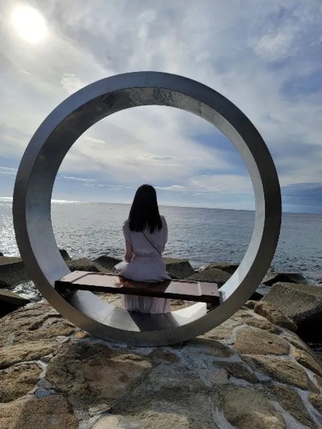 夕暮れ時には真っ赤な夕日がリングに重なり、宝石のように輝きます