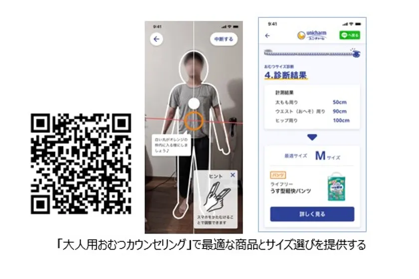 人工知能を駆使した診断と撮影採寸で最適な紙おむつ選びを提供 「大人用おむつカウンセリング」を通じて 介護者と要介護者間でコミュニケーションを創出