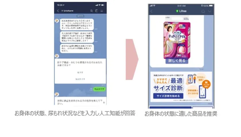 ユニ・チャーム株式会社(代表取締役 社長執行役員:高原豪久)は、大人用排泄ケアブランド「ライフリー」を通じて、介護環境をサポートする商品やサービスを提供しています。この度、お客様や小売店からお問い合わせが多い、大人用紙おむつの「適切な商品」と「最適なサイズ選び」に絞り、ヘルステックとして、LINEによるチャットトークの診断機能と、スマートフォンで撮影して採寸できる人工知能(Artificial Intelligence)技術「Bodygram」を組み合わせた「大人用おむつカウンセリング」を、2021年12月から開始いたします。