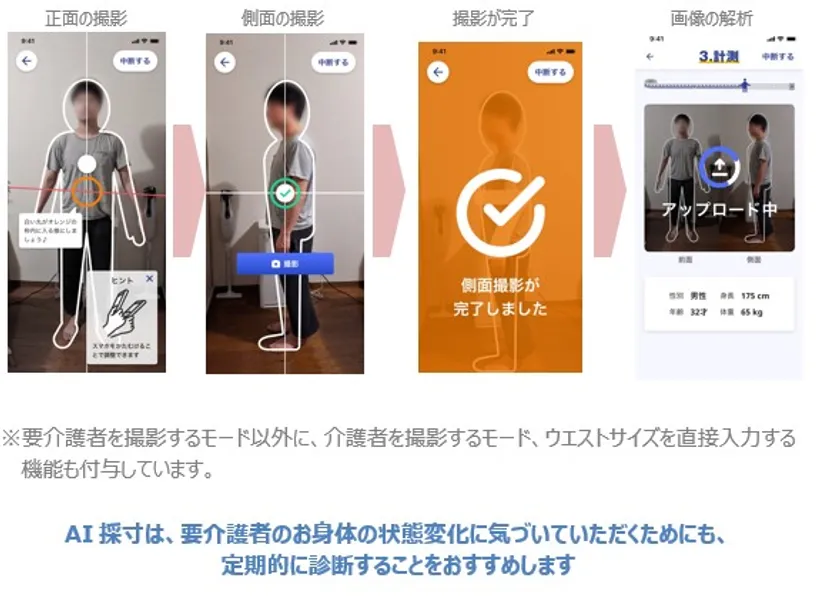 (3)AI採寸により、要介護者のお身体に最適な紙おむつのサイズをサポート