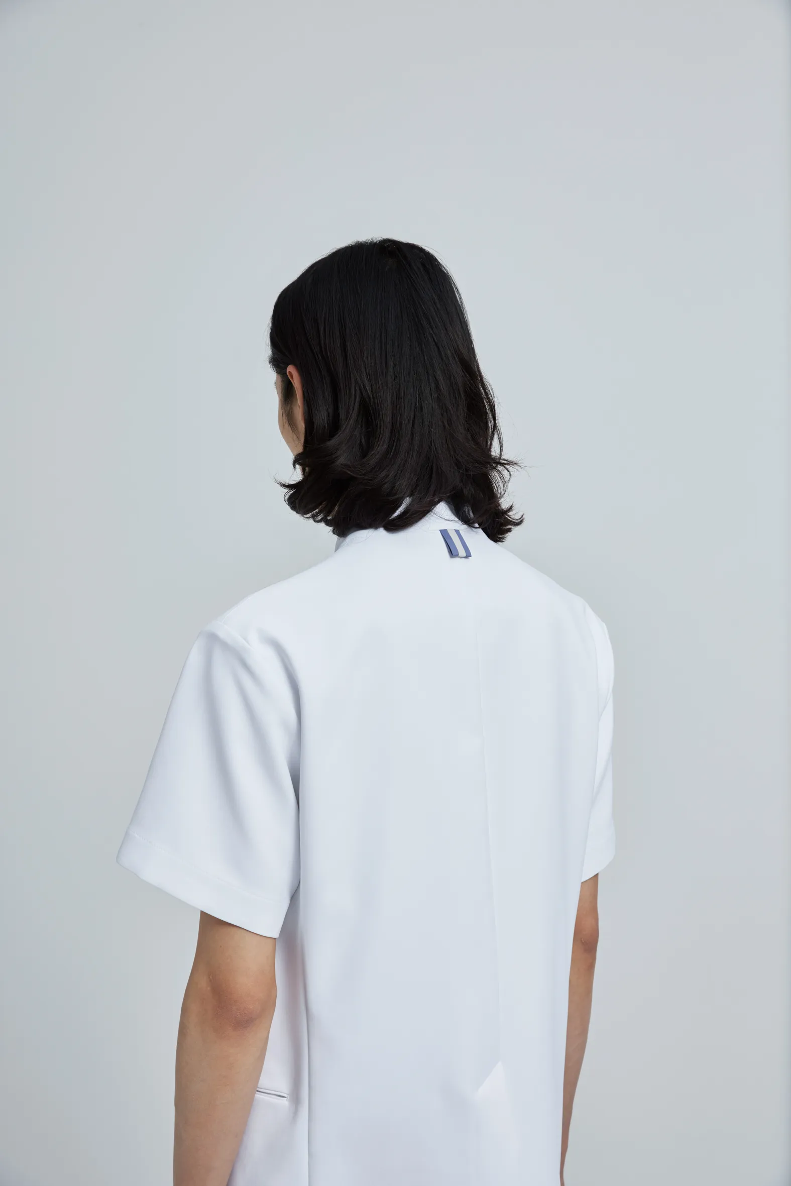 生地はシルクのように滑らかで、柔らかく膨らみのあるスポンディッシュな素材感が特徴の「urban tech」シリーズ。 着心地の良さに加えて、ストレッチ、ノンアイロン、透け防止、吸水速乾、静電防止、軽量、衿裏汚れ防止の高機能も網羅する白衣。