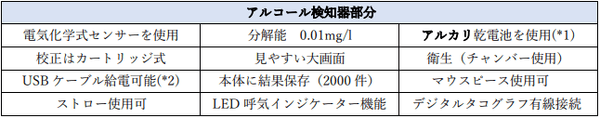 従来の機能は踏襲しつつ、矢崎エナジーシステム製のデジタルタコグラフと連動し、アルコール測定結果を送信、保存管理ができる製品となっております。