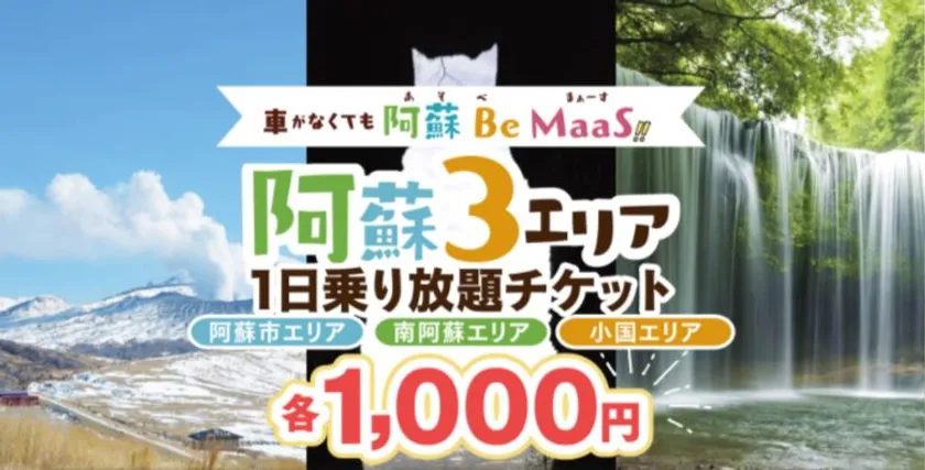 熊本県・公益社団法人熊本県観光連盟では、「車がなくても 阿蘇 Be MaaS!!(あそべまーす)」と称し、熊本型観光MaaSの実証実験を実施します。
