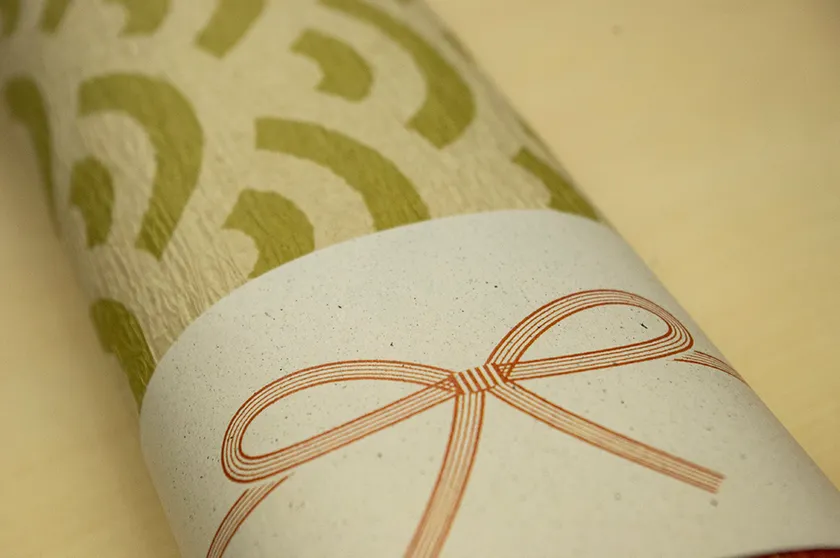 パッケージラベルもハレの日をイメージした水引風のオリジナルデザインとなっています。