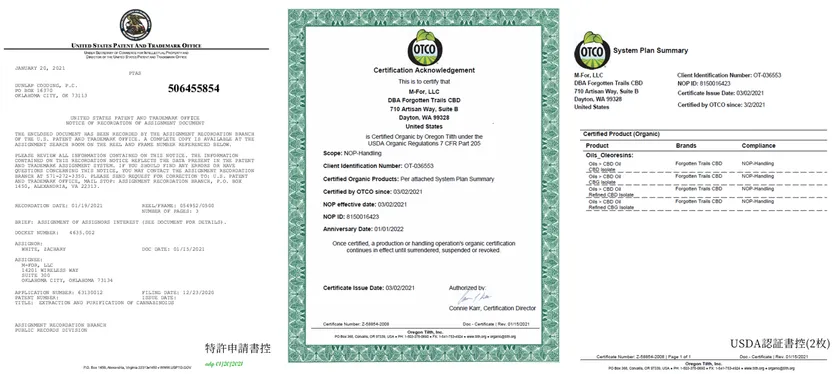 USDAオーガニック認証「H2Oアイソレート」は、アメリカとの独占契約により、日本で随一のUSDA CBD原料となっています。溶媒を使っていない事を証明できるCOA(成分分析表)についても、展示会ご来場者様にお渡しを予定しております。