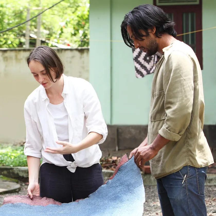 Malai(マライ)は、2017年にスロバキア出身のZuzana Gombosova(ザズアナ・ゴンボソヴァ)氏の研究プロジェクトとしてスタート。インド南部ケーララ州に研究施設および製造工場を開設し、現地の元農家らを職人として育成、雇用しています。スタートアップの成長が著しいインドにおいて注目されている若手起業家の一人です。