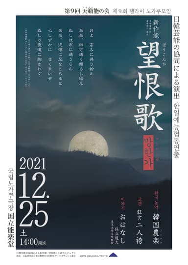 第9回天籟能の会「農楽×能楽」 日韓芸能の協同による新作能『望恨歌』を 東京・千駄ヶ谷の国立能楽堂で12月25日に上演
