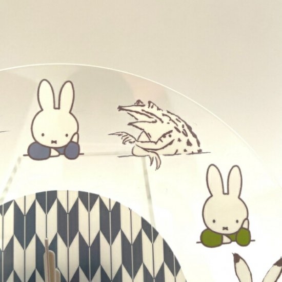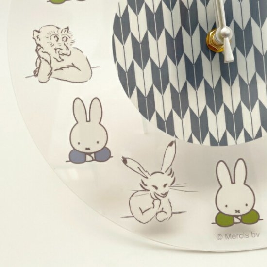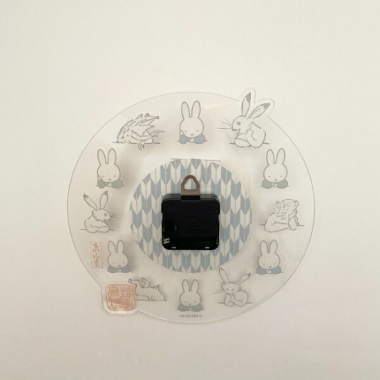 大人気のミッフィー×鳥獣戯画コラボシリーズに、決定的な作品が登場です。リビングなどのお部屋に飾れる、掛け時計が加わりました。ジャンルはなんと呼べばいいのでしょうか、、、和モダン?現代アート?ただの「かわいい」では収まらない、なんとも言えない雰囲気を醸し出しています。クリアな文字盤には、ミッフィーと鳥獣たちが交互に並んでいて、まるで談笑しているような光景です。
