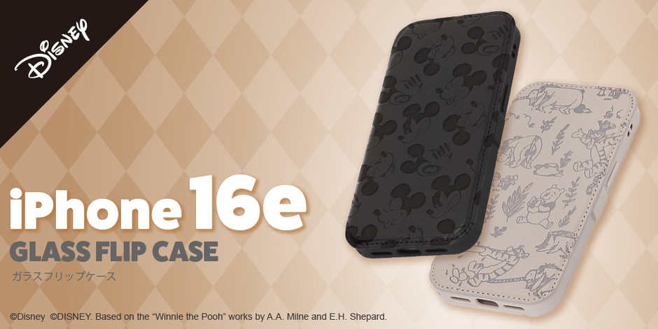ディズニーキャラクターデザインの機能性を追求したiPhone 16e対応のガラスフリップケースです。