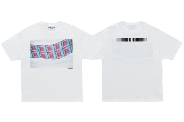 今回のコレクションでは、川内氏の写真作品に〈NÒMARHYTHM TEXTILE〉のテキスタイルアートが重なり、静と動、記憶と感覚が織りなす3型のTシャツが完成。