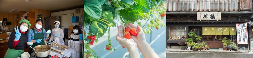 ブラウンスイス牛のミルク100%の手作りチーズや、数種類のイチゴの食べ比べができるイチゴ狩り、地元野菜と群馬県産豚肉を使用した「まえばしtonton汁」のほか、明治10年創業の酒蔵「柳澤酒造(※)」では全国的にも珍しい「もち米」を使用したふくよかな甘口の地酒を味わっていただけます。