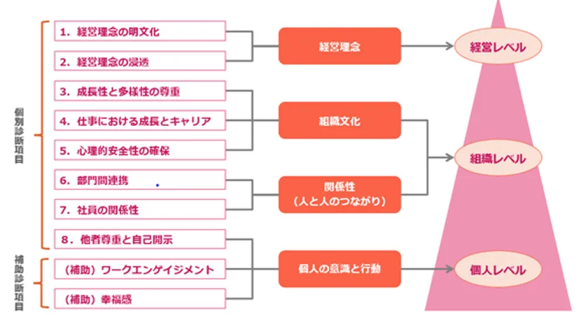 ・診断結果の報告:全社診断、部門・役職別診断、各種カスタマイズ比較分析