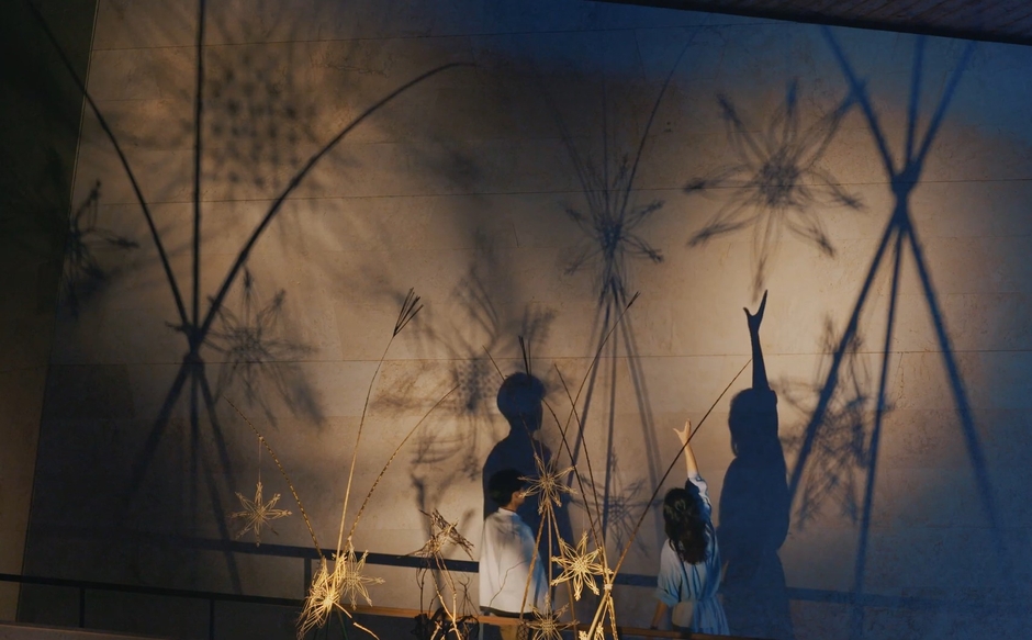 大きなシダの葉やヤシの葉など温暖な沖縄ならではの植物でつくるアレンジメントが登場します。植物は高さ4mの琉球石灰岩の壁に影をつくり、森の中に迷い込んだような影絵遊びができる他、フォトスポットとしても楽しめます。