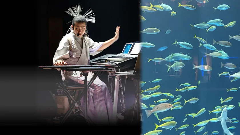 複数の最先端電子楽器によるひとりオーケストラ 黒潮を表現した大水槽を背景にした壮大で華麗なるナイトコンサート