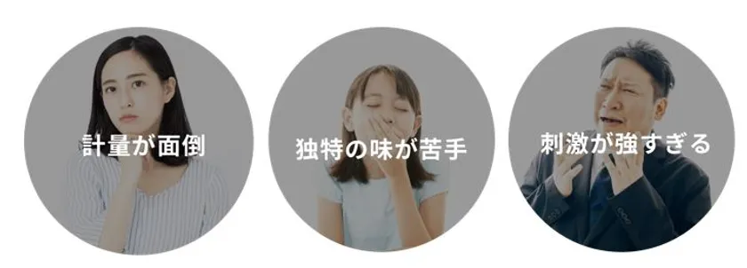 普段使っている口腔ケア商品の不満点について尋ねたところ、1位:計量が面倒 34%、2位:独特の味が苦手 33%、3位:刺激が強すぎる 32%という結果になりました。