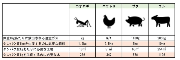人間の体は栄養補給の為にタンパク質やビタミンB12を摂取する必要があります。食肉はそれらの栄養素を十分に持っているので家庭でもレストランでも料理として多く使われます。しかしタンパク質やビタミンB12は必ずしも食肉が一番コストパフォーマンスが良いわけではございません。昆虫、特にコオロギはこれらの食糧不足や環境問題の2つの問題を解決できる可能性を持っています。