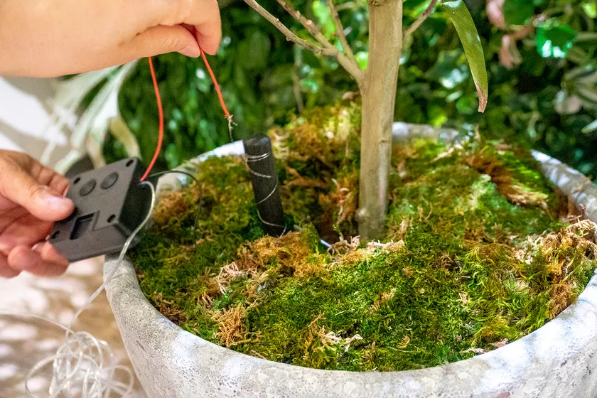 植物が根を張る土壌または水の中の植物付近のマイナスの電荷を拾い電力に変換し、現在4V程度の電圧をイルミネーションなどの形で活用できる実証実験中の技術です。