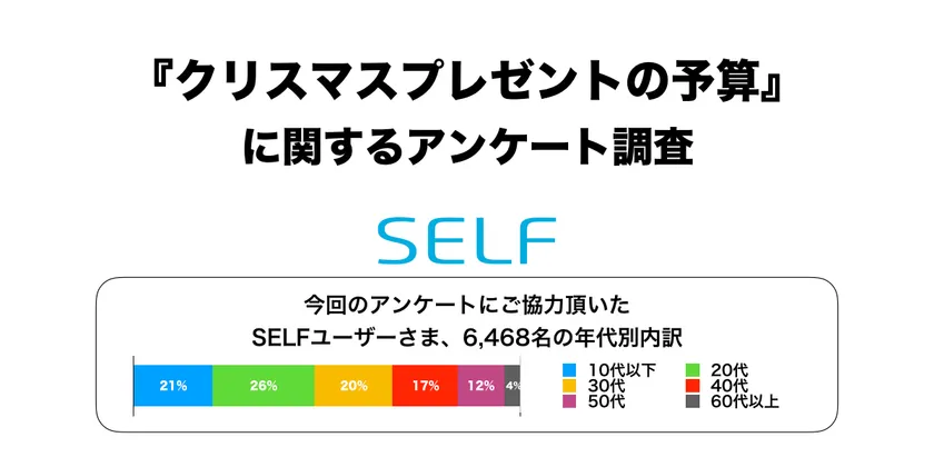 SELF株式会社(東京都新宿区)は、同社提供スマートフォン向けアプリ『SELF』において、「クリスマスプレゼントの予算」に関するアンケート調査を行いましたので結果をレポートいたします。