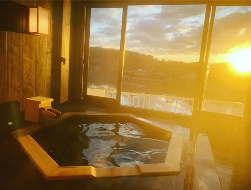 現在当館は千葉県一の貯水量を誇るダム湖である亀山湖を一望できる高台にあり、毎分600リットルを自噴するチョコレート色の天然温泉をかけ流ししております。