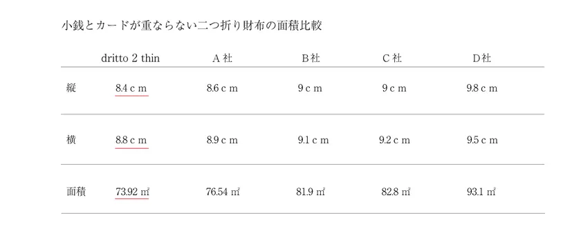 dritto2 thin には全く無駄なスペースがありません。これ以上小さい財布を作るには財布の容量を少なくする他術がありません。