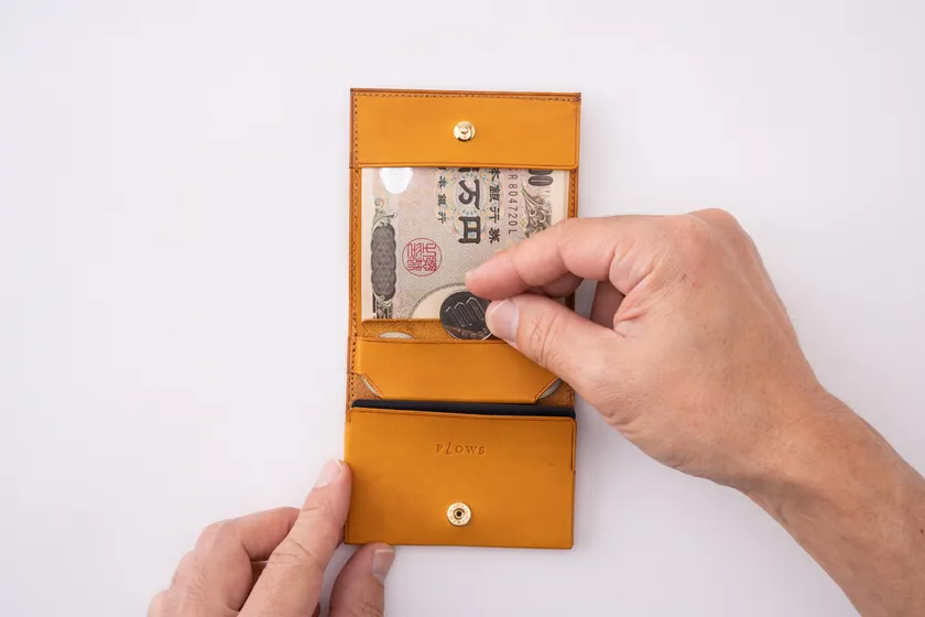 紙幣10枚、コイン13枚、カード6枚を収納可能。
