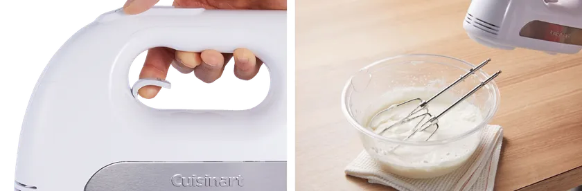 ハンドミキサーのパワーに定評のあるクイジナートから「低速・中速・高速」の3段階の速度調節で、初心者でも使いやすいクイジナート初のエントリーモデルが登場。