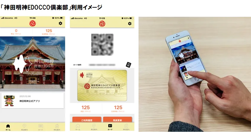 「神田明神EDOCCO倶楽部」は、当社とバリューデザインが共同提供しているスマートフォンアプリ【Value Wallet】をベースに開発しており、神田明神の社史や境内の案内、お参りの作法を確認できるガイド・学習機能などのコンテンツをご提供いたします。加えて、2022年1月より、神田明神へのお参りや提携店の利用に応じた「参詣(マイリ)」の付与および特典交換サービスなどの提供も開始する予定です。