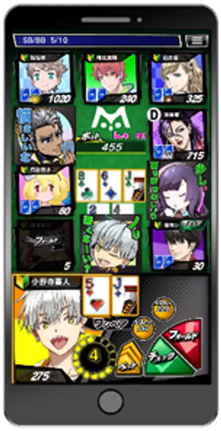 既存のテキサスホールデムのアプリのようなカジノの雰囲気を重視した見た目を一新し、初めてプレイする人でも個性豊かなキャラと共にゲーム感覚でルールを覚えながらプレイすることができる!