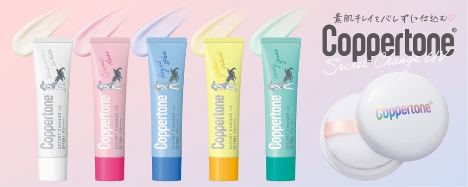 「コパトーン シークレットチェンジUV」シリーズは、SPF50+、PA++++のUVカット機能に加え、お肌の色味を明るくするトーンアップ※1が叶う日焼け止めです。なりたい肌の印象やその日の気分によって選べる、計5色のカラーバリエーションをご用意しました。