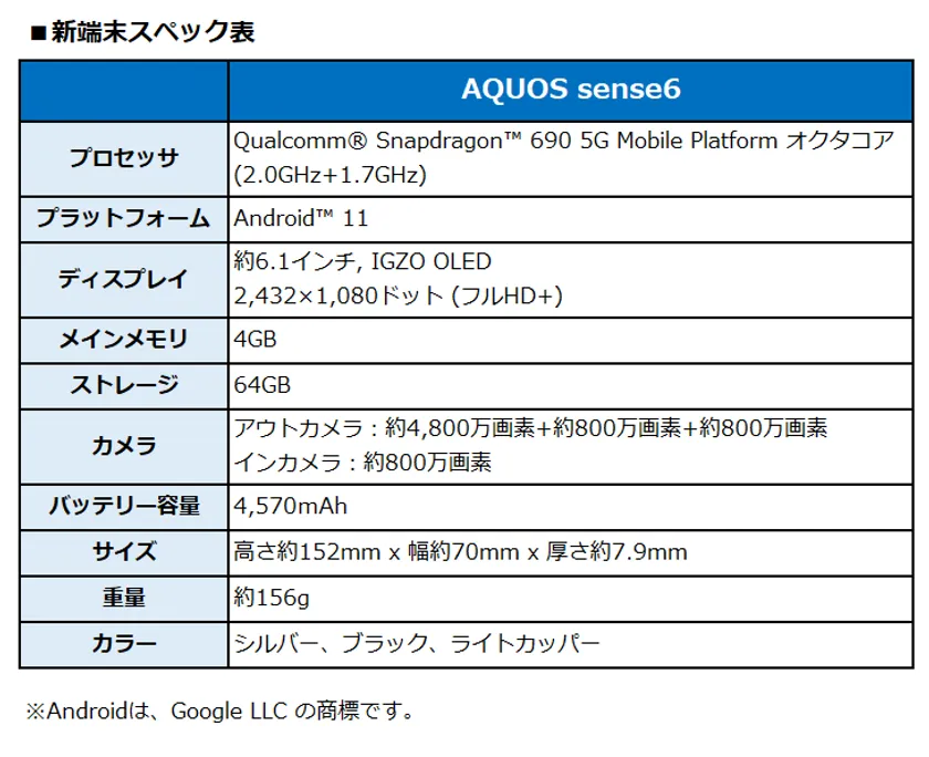 BIGLOBEがシャープ製スマートフォン 「AQUOS sense6」の提供を開始 ~安心の電池持ち、 性能もスタイルも満足の1台をラインアップに追加~