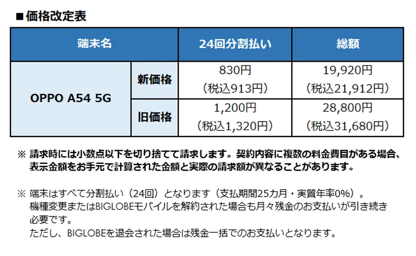 ビッグローブ株式会社(本社:東京都品川区、代表取締役社長:有泉 健、以下BIGLOBE)は、シャープ製スマートフォン「AQUOS sense6」を12月24日より提供開始します。また、同日、OPPO製スマートフォン「OPPO A54 5G」の販売価格を改定します。