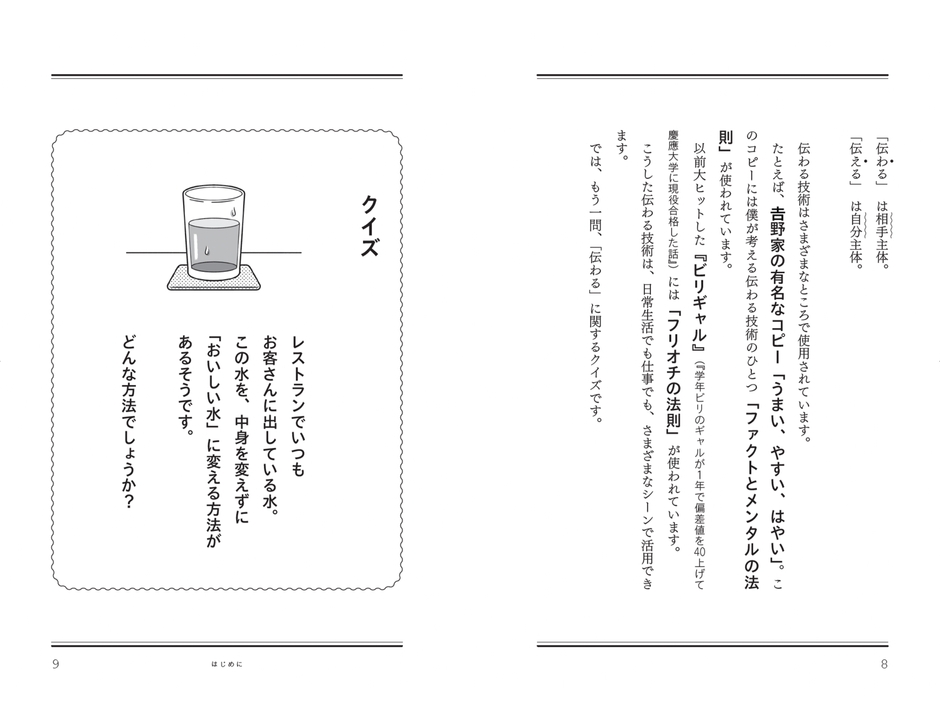 本書を読むことで、本書の内容を身に着けるのと同時に、「伝わりやすい伝え方」の構造を学ぶことができるようにもなっています。
